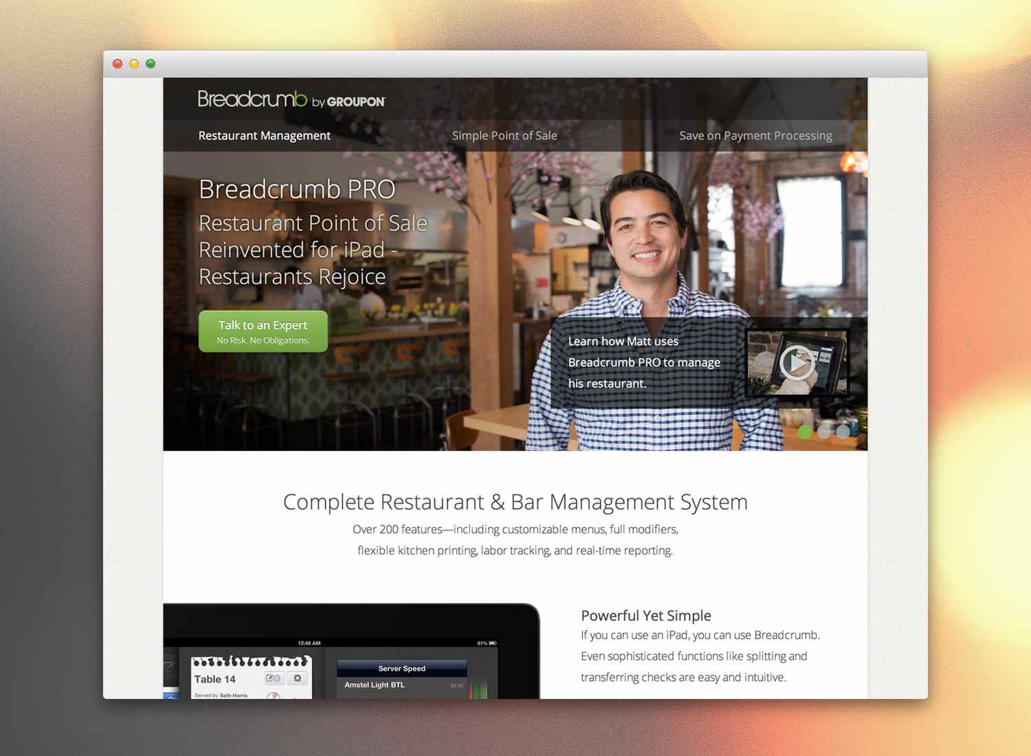 Landing page optimization for Breadcrumb, Groupon's merchant services brand.